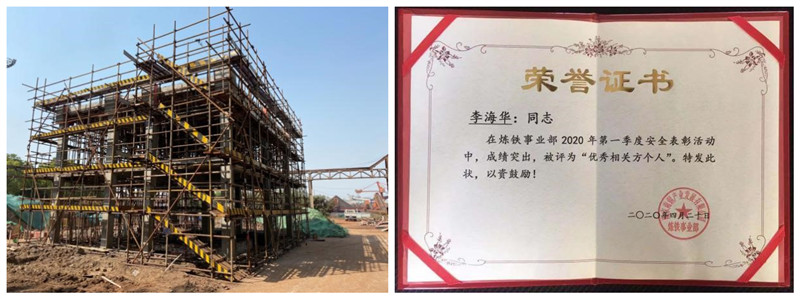 2020年4月19日,江蘇分院總承包的“南京金江冶金爐料有限公司原料廠一混勻增設(shè)布袋除塵器項(xiàng)目”土建主體工程順利封頂,項(xiàng)目經(jīng)理李海華榮獲南鋼集團(tuán)頒發(fā)的“優(yōu)秀相關(guān)方個(gè)人”稱號(hào)。