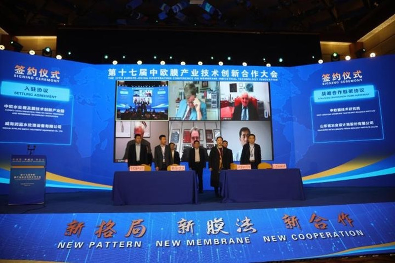 此次大會由山東省科技廳、威海市人民政府、中國膜工業(yè)協(xié)會、歐洲膜學(xué)會聯(lián)合主辦;由威海市科學(xué)技術(shù)局、環(huán)翠區(qū)人民政府、哈爾濱工業(yè)大學(xué)(威海)、青島農(nóng)業(yè)大學(xué)、中歐膜技術(shù)研究院承辦。本次大會邀請了歐洲膜學(xué)會名譽主席恩瑞克·德里奧利,中國工程院院士、哈爾濱工業(yè)大學(xué)教授、中歐膜技術(shù)研究院院長馬軍等多位國內(nèi)外膜科技領(lǐng)域?qū)<覍W(xué)者線上、線下同步參會。參會各方圍繞膜產(chǎn)業(yè)發(fā)展作主旨演講、專題報告,促進(jìn)威海膜產(chǎn)業(yè)升級發(fā)展。