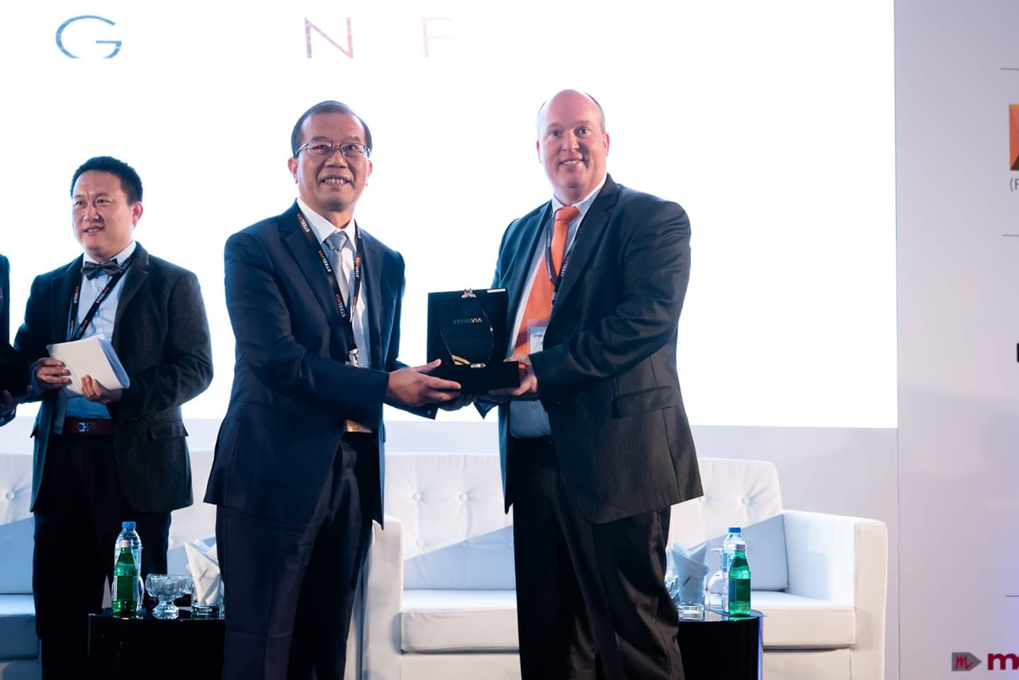 魏新民董事長作為特邀嘉賓出席了本次論壇,并為普瑞特、塔塔、澳大利亞參會公司頒發(fā)了“論壇紀念徽章”。為了擴大山冶設計的國際影響力和知名度,國際業(yè)務分公司和煉鐵室派代表參加了此次論壇及展覽會,并在技術論壇會上發(fā)言,向參會人員全方位介紹了HISmelt技術。