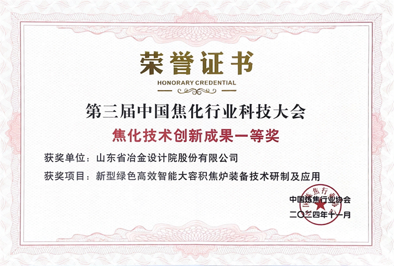 此次大會是中國煉焦行業(yè)協(xié)會,繼2017年在北京召開的第二屆中國焦化行業(yè)科技大會又一個行業(yè)盛會,也是慶祝中國煉焦行業(yè)協(xié)會成立30周年的慶典大會。會議旨在為全面總結近年來焦化行業(yè)在新工藝、新技術、新裝備、新材料等方面的創(chuàng)新成果;表彰為焦化行業(yè)科技進步做出突出貢獻的先進單位和個人;為焦化行業(yè)轉型升級、減污降碳和高質量發(fā)展提供強力技術支撐,其中山冶設計獲得了中國煉焦行業(yè)協(xié)會頒發(fā)的多項榮譽。