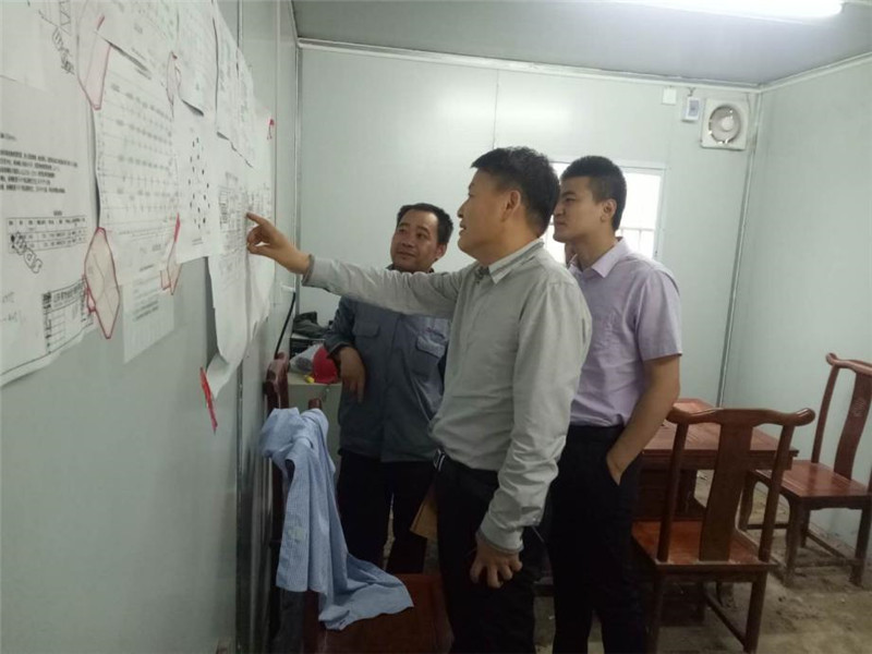 會(huì)談之后,宋總到施工現(xiàn)場(chǎng)考察指導(dǎo)高爐公輔項(xiàng)目及污水處理項(xiàng)目工作。在高爐公輔項(xiàng)目施工現(xiàn)場(chǎng)辦公室里,宋總對(duì)照著墻上張貼的項(xiàng)目進(jìn)度計(jì)劃及樁基平面圖,詳細(xì)了解項(xiàng)目的進(jìn)展情況,并在考察現(xiàn)場(chǎng)后,認(rèn)真聽(tīng)取了項(xiàng)目部對(duì)施工進(jìn)度、質(zhì)量、安全管理的工作匯報(bào),宋總對(duì)項(xiàng)目部管理人員的辛勤工作表示了肯定,并針對(duì)工程難度大、樁基分包單位力量弱、價(jià)格低等存在的困難做出了部署。
