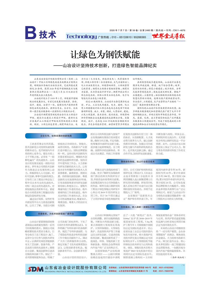 讓綠色為鋼鐵賦能——山冶設(shè)計(jì)堅(jiān)持技術(shù)創(chuàng)新,打造綠色智能品牌紀(jì)實(shí)