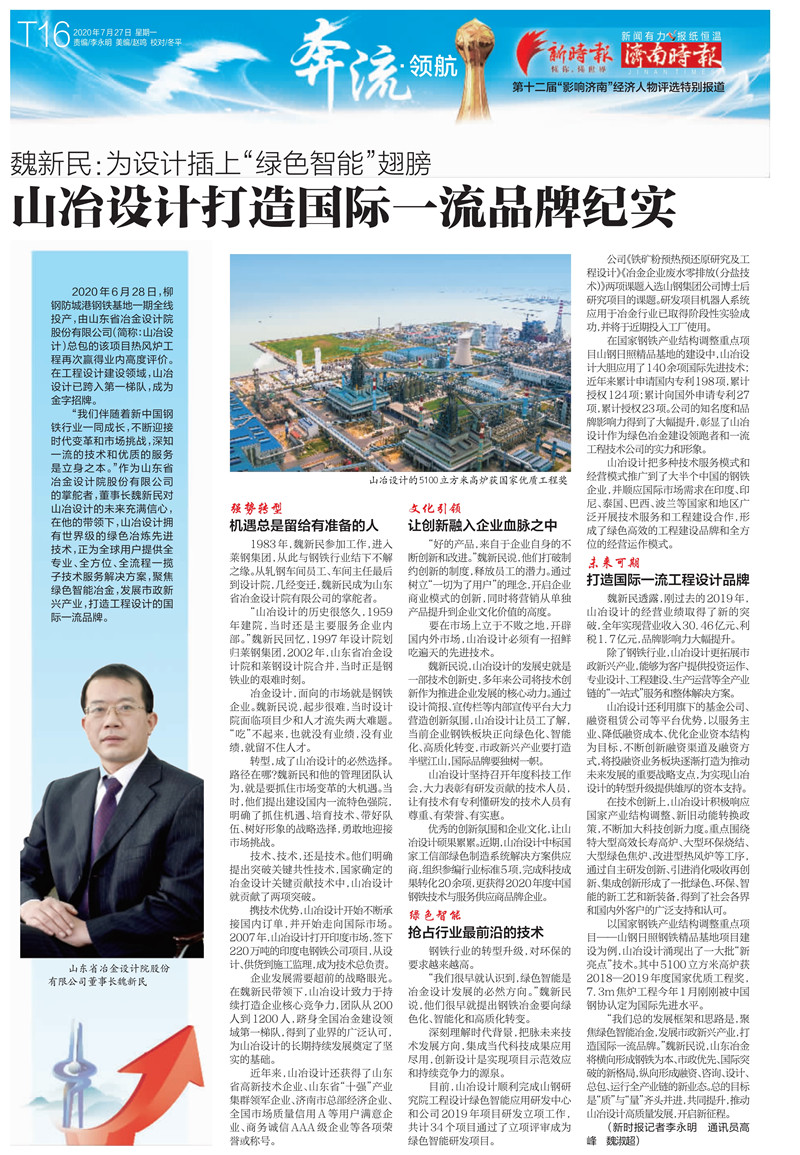 魏新民:為設(shè)計插上“綠色智能”翅膀 山冶設(shè)計打造國際一流品牌紀實