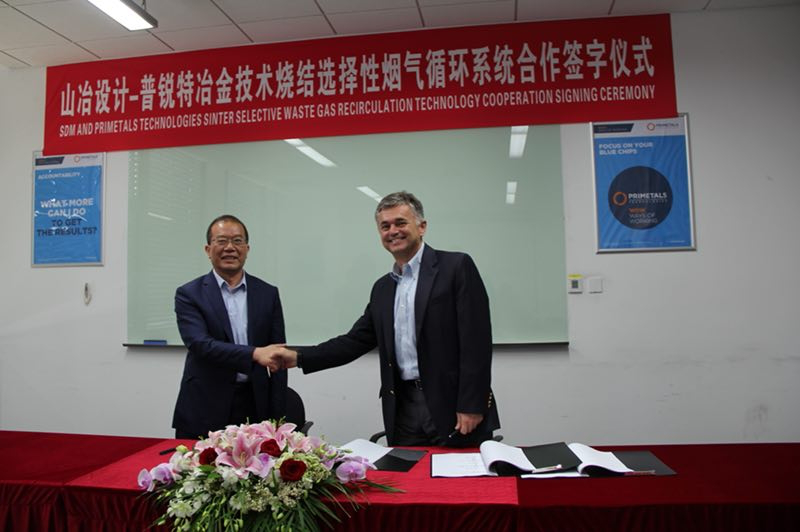 2018年5月24日,在普銳特冶金技術(shù)(中國)有限公司總部上海,公司董事長魏新民和普銳特冶金中國區(qū)CFO Stefan先生簽訂了燒結(jié)機選擇性煙氣循環(huán)(SWGR)技術(shù)合作協(xié)議,公司副總經(jīng)理宋志順、設(shè)計管理部總師孫榮生、市場部部長趙圣存和普銳特冶金節(jié)能環(huán)保部總經(jīng)理Peter、營銷總監(jiān)梁君、山東大區(qū)經(jīng)理孫磊一同參加了本次合作協(xié)議的簽約儀式。此協(xié)議的簽訂標(biāo)志著公司開始與普銳特冶金在中國國內(nèi)乃至印度、伊朗共同推廣燒結(jié)機煙氣循環(huán)技術(shù)。