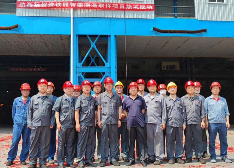 7月1日,在慶祝黨的101周年生日之際,黃海之濱,喜傳捷報(bào),我公司EPC總承包的山鋼日照精品基地鐵水智能快速測(cè)溫取樣項(xiàng)目成功熱試!當(dāng)天下午,橫跨煉鋼廠進(jìn)鐵線上方的智能測(cè)溫取樣平臺(tái)上,三套智能機(jī)器人經(jīng)過前期精心調(diào)教已進(jìn)入最佳狀態(tài),胸有成竹地靜坐在軌道上等待著主人的到來,13時(shí)30分,日照精品基地?zé)掍搹S王經(jīng)理一行來到平臺(tái),詳細(xì)了解設(shè)備安裝、調(diào)試、生產(chǎn)準(zhǔn)備情況,煉鋼廠黨政領(lǐng)導(dǎo)對(duì)該項(xiàng)目從設(shè)計(jì)、現(xiàn)場(chǎng)施工、設(shè)備供貨直到智能調(diào)試,給予高度評(píng)價(jià),對(duì)總包方的出色表現(xiàn)予以充分肯定,并向我公司送交了表揚(yáng)信。王經(jīng)理一聲令下,銀裝素裹的機(jī)器人起步行走,準(zhǔn)確來到取樣窗口,熟練地展開鋼鐵長(zhǎng)臂,下探、取樣、回臂、卸樣、丟桿、復(fù)位,現(xiàn)場(chǎng)響起熱烈的掌聲,熱試成功!然后現(xiàn)場(chǎng)舉行了熱烈的慶祝儀式,煉鋼廠黨政領(lǐng)導(dǎo)與參戰(zhàn)各方合影留念。