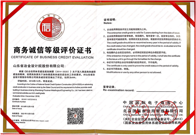 本次信用評級經(jīng)過資料申報、行業(yè)調(diào)查、周邊訪問等一系列社會評估工作程序,經(jīng)國家商務(wù)部中國國際電子商務(wù)中心、北京國富泰信用管理有限公司對公司的信用記錄、管理能力、經(jīng)營水平、社會形象、財務(wù)狀況、顧客滿意度、發(fā)展前景等綜合實力進(jìn)行嚴(yán)格、全面的分析和審核,最終公司獲得一致通過,并被評為商務(wù)誠信等級AAA級信用企業(yè)。這是對企業(yè)信用的最高等級評價,標(biāo)志著公司強(qiáng)大的企業(yè)綜合實力和良好企業(yè)信用度獲得了高度認(rèn)可。